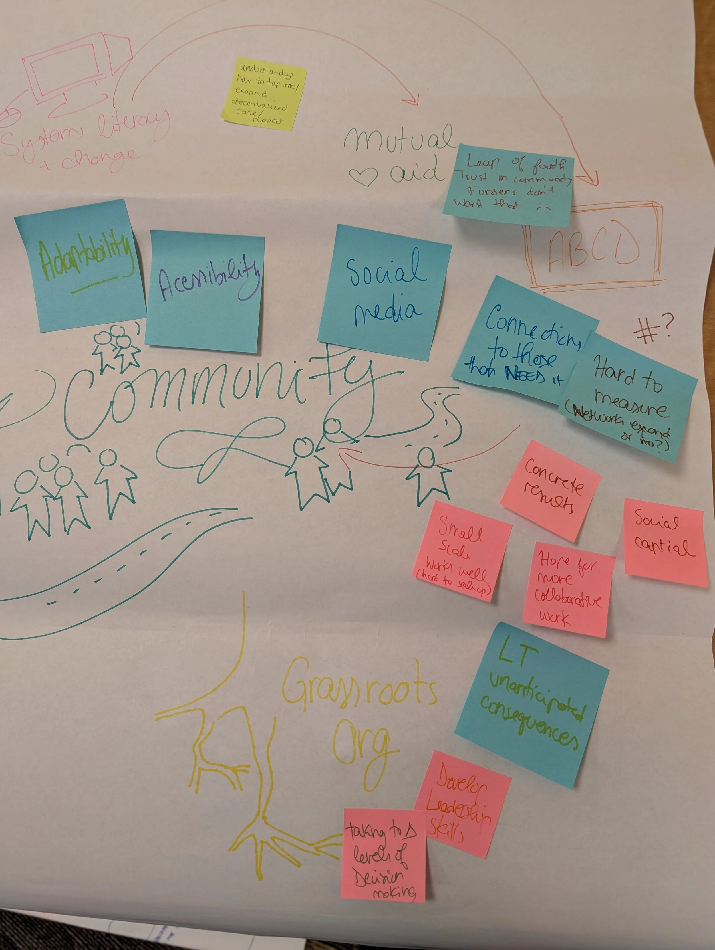 On March 25th, CDLI gathered folks doing community development work (CD Practitioners) to ask these questions and hear from our peers in other organizations, other subsets of community work, other communities. There were folks working in grassroots organizations, folks working in academia, folks in leadership of large non-profits, neighbourhood changemakers and more.